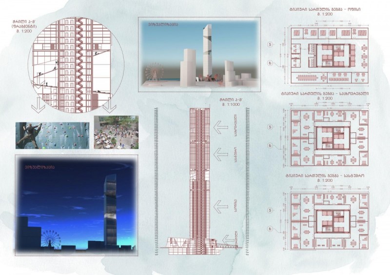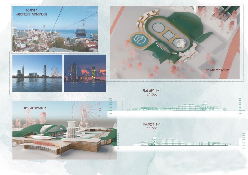 Project Contains skyscraper and aquapark, which are located in Batumi on the Black Sea beach