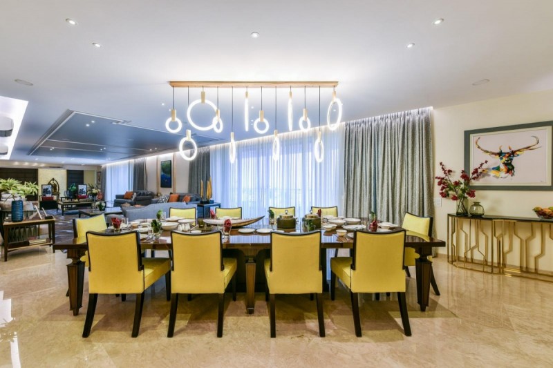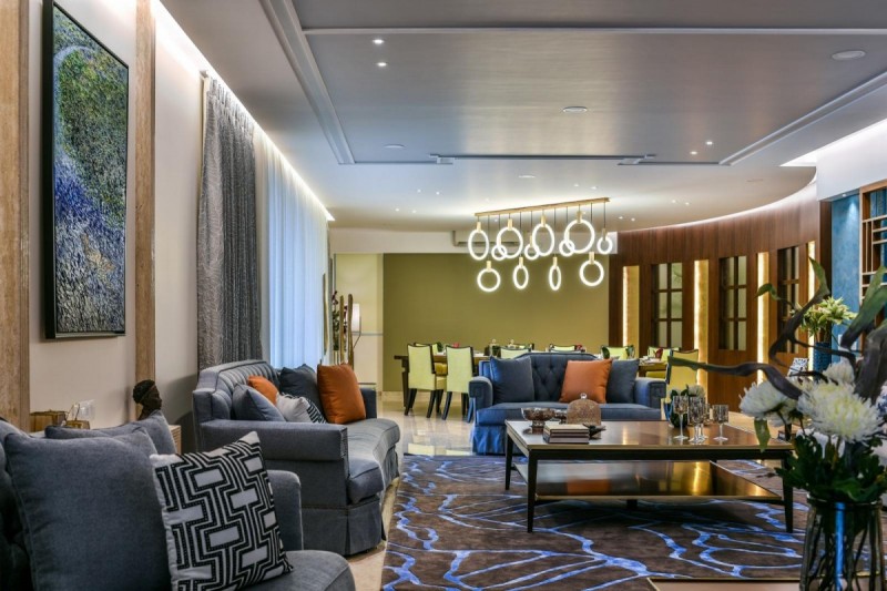 The Thane Residence originally was two 5 bedroom apartments; amalgamated now to formulate one entity by demolishing the common wall encasing the living rooms of the two. Boundaries have been created in a way that it is presented as a subtle conversation between any two spaces at the same time highlights the metamorphosis to create a surprise element.