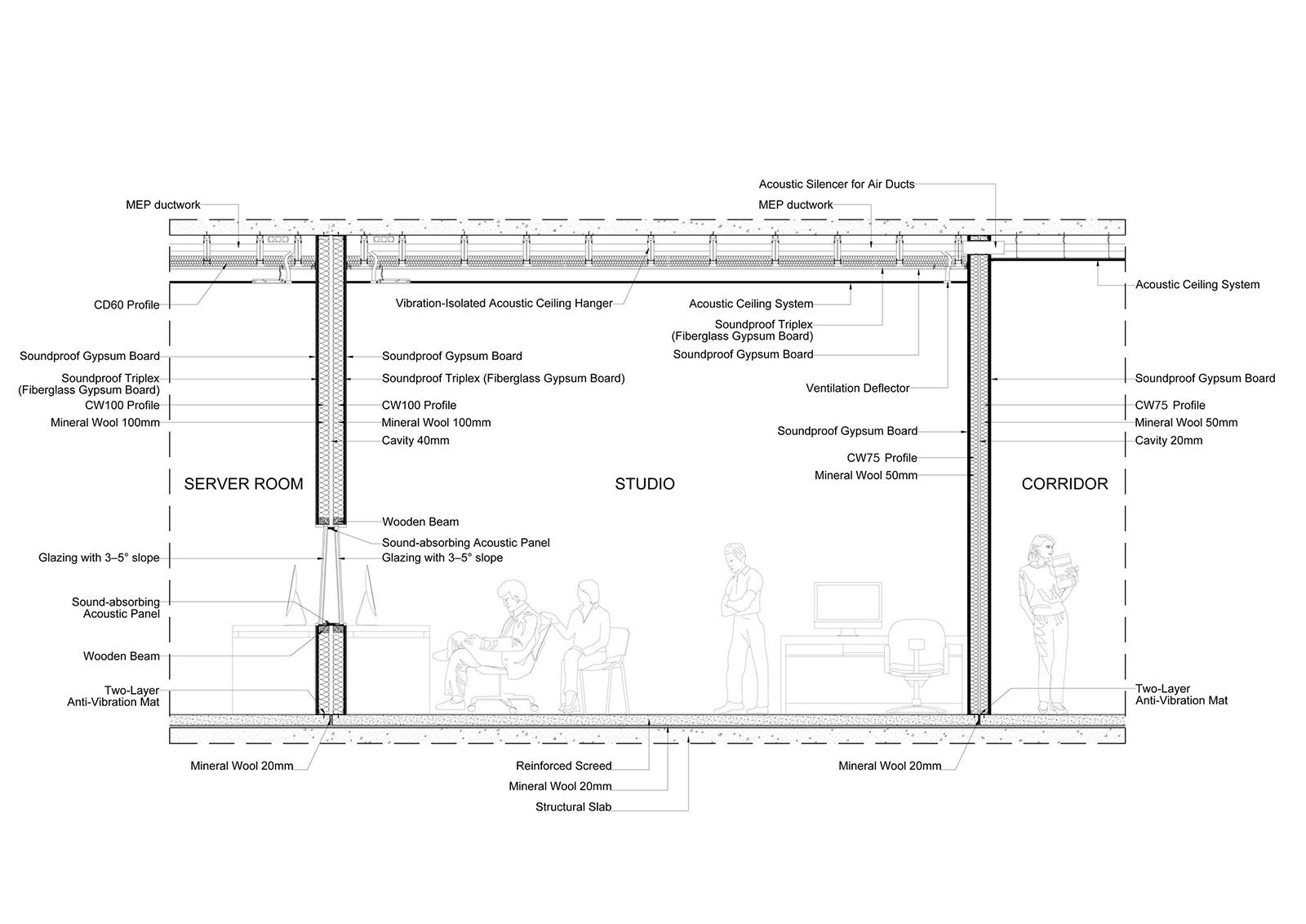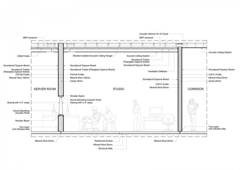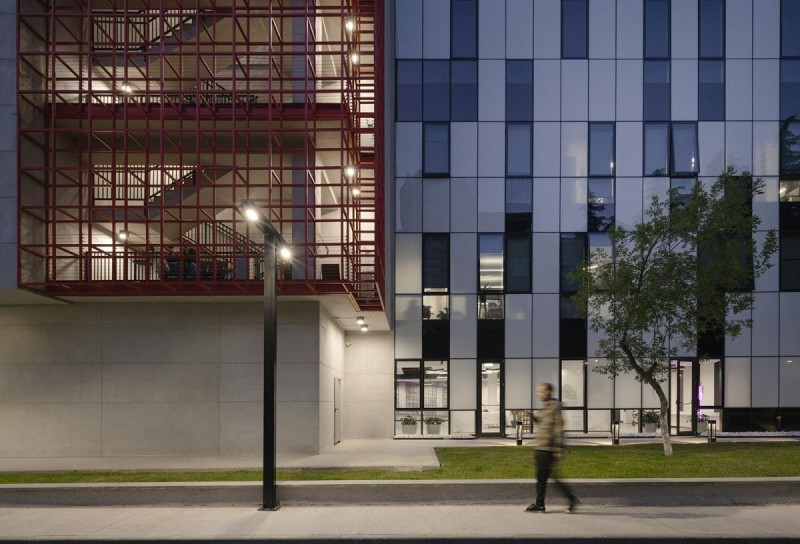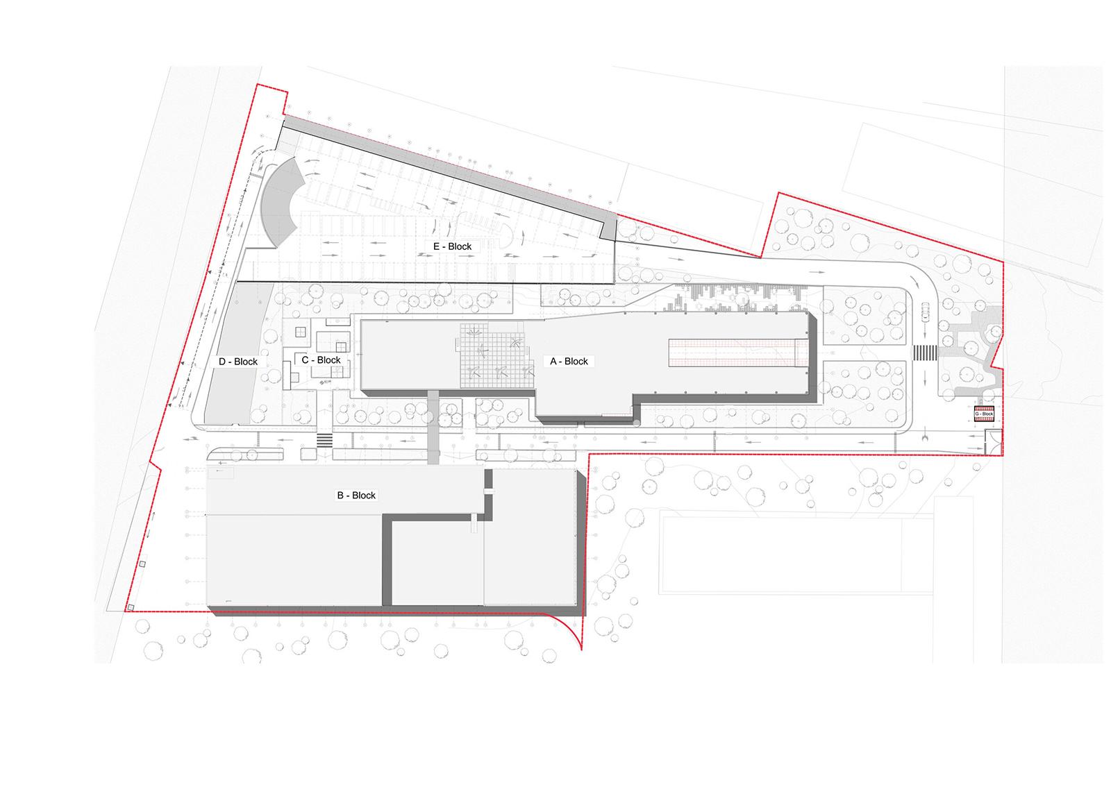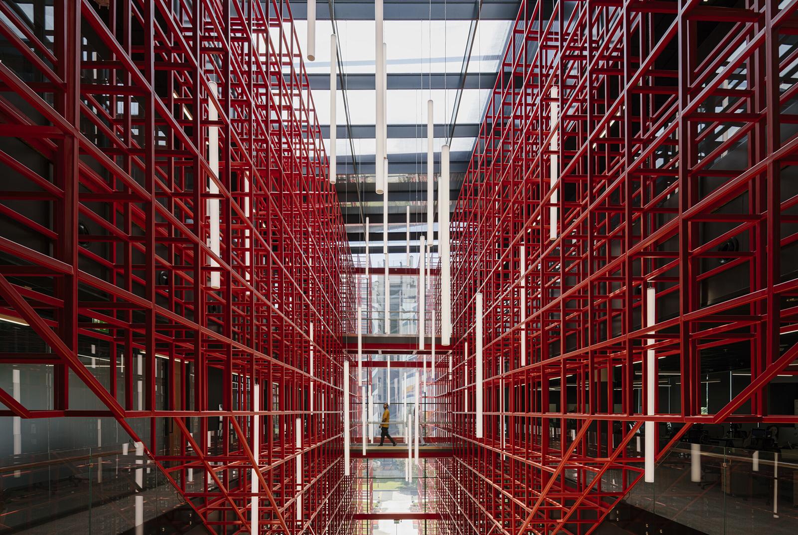 Credits: Tbilkalakproeqti Ltd Acoustic Engineer: Akustiko LLC MEP: Casa Calda LLC Structural Engineer: Capiteli Ltd Construction: Dagi Ltd Project Management: CMC Ltd Photo: Lasha Gigauri, David Bantsadze Tria Group has completed the new headquarters for the Georgian Public Broadcaster in Tbilisi — a bold, 27,918 m² media complex that redefines public broadcasting in Georgia. Conceived as a multifunctional workplace and production campus, the facility unifies television, radio, and digital infrastructure into a cohesive architectural statement grounded in transparency, adaptability, and civic presence. Project Overview The headquarters is organized into five interconnected blocks housing administration, newsrooms, recording studios, film pavilions, post-production zones, specialized technical infrastructure, and archival storage. At its core lies a dramatic atrium framed in red steel — a civic heart that symbolizes openness and institutional transparency. Glazed walkways and a central staircase weave together departments, encouraging collaboration and cross-disciplinary exchange. Each block operates autonomously yet maintains seamless internal connectivity, ensuring workflow continuity and creative synergy. Abundant daylight, visual openness, and spatial clarity reinforce the project’s design ethos. The façades, articulated in red, white, and grey, express dynamism and lightness, while red functions as a brand-defining signature anchoring the building in its urban context. Program highlights: Block A: Administration, newsroom, radio studios, theatre, and central control room Block B: Four film/TV pavilions (1,000 m², 700 m², 500 m², and 200 m²) Block C: Film, video, and audio archives in climate-controlled conditions Block D: Technical infrastructure — server rooms, editing suites, and workshops Block E: Parking for staff, guests, and logistics. Technical + Acoustic Strategy A central challenge was integrating advanced broadcast infrastructure within a unified architectural framework. Studios and control rooms demanded rigorous acoustic insulation, vibration isolation, electromagnetic shielding, and precise climate control. These were achieved through modular planning, specialized detailing, and close collaboration with consultants. Each studio is structurally independent, with no rigid wall, floor, or ceiling connections. Acoustic dampers, isolated mechanical penetrations, and dual-glazed barriers prevent sound transfer, while buffer zones between clusters safeguard uninterrupted broadcast operations. Civic + Environmental Role Beyond technical performance, the building fosters openness, accessibility, and institutional unity. Step-free circulation and ergonomically designed workspaces ensure inclusivity, while shared civic spaces — including the atrium and indoor/outdoor recreational zones — promote cross-departmental engagement. Sustainability measures, such as high-performance insulation and reduced energy demand, provide long-term efficiency and environmental benefits. A Landmark for Independent Media More than a production hub, the Georgian Public Broadcaster headquarters stands as a cultural landmark. It embodies transparency, resilience, and the democratic role of independent media. By supporting collaboration, accessibility, and civic trust, it reflects a progressive vision for public broadcasting in Georgia.