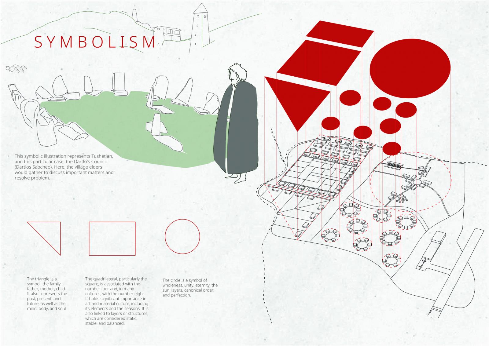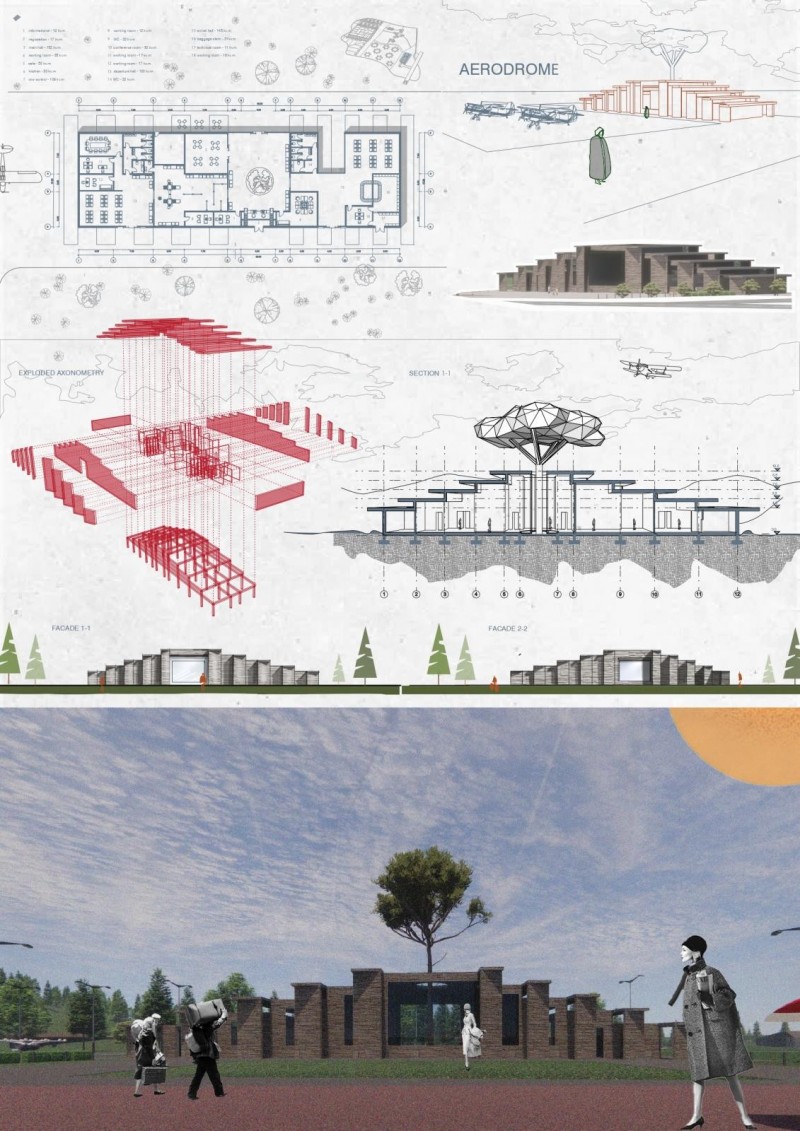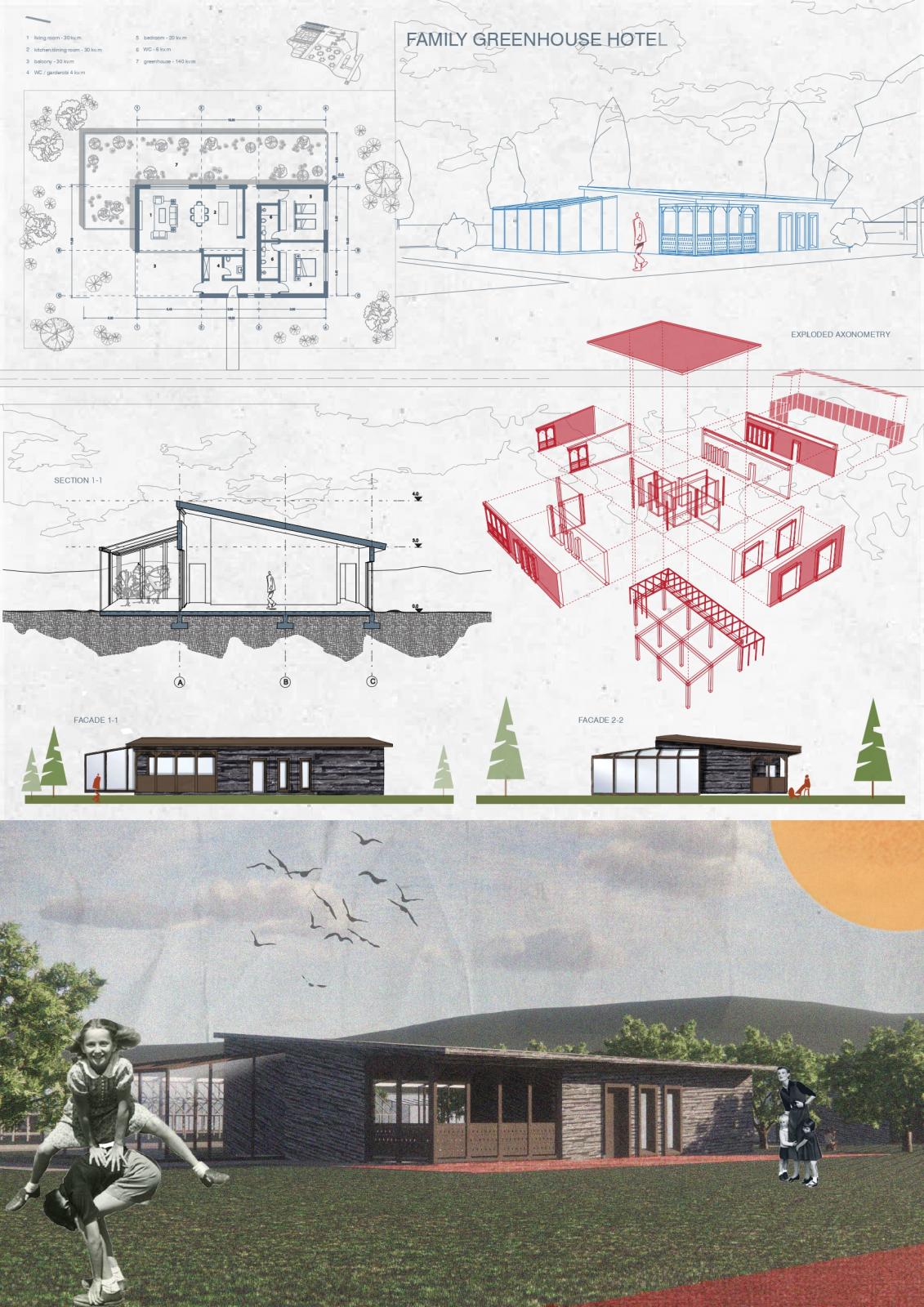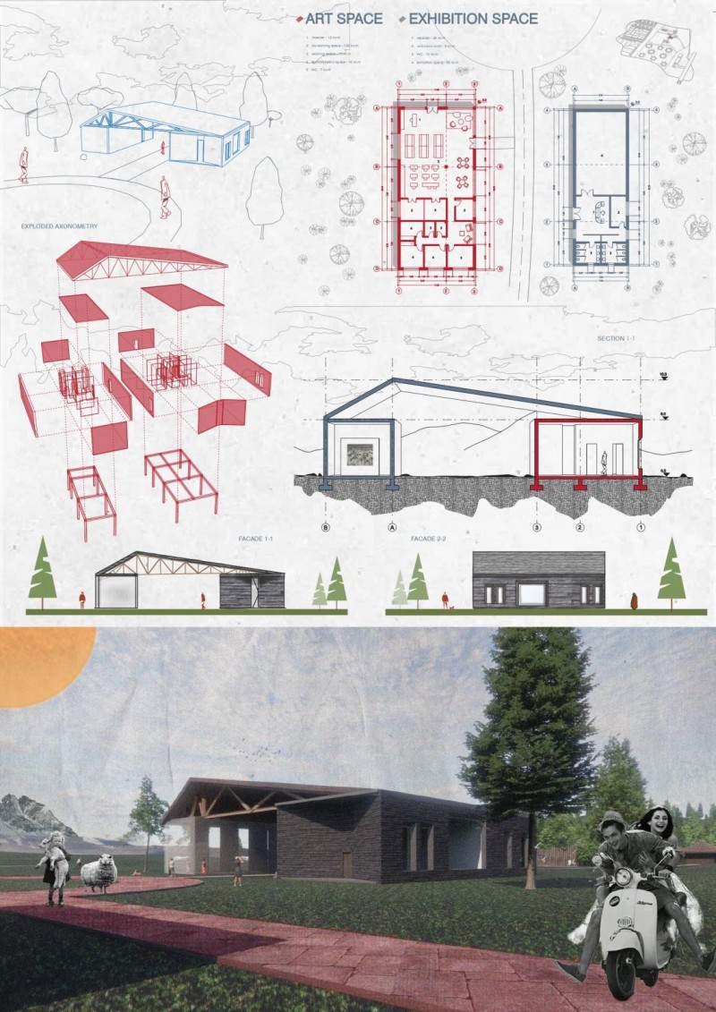 Tusheti Seasonal Settlement (Ethno Psycho-Physiological Tourism) This is a bachelor’s project, the idea of which initially arose from observing the challenges currently facing the mountains and the depopulation of mountainous regions. Tusheti, one of Georgia’s most beautiful and remote regions, where permanent residents are now nearly gone due to harsh climatic and other environmental factors, provided an excellent foundation for an interesting project. At the beginning of the research, the village of Omalo was chosen, as it is the center of Tusheti and was originally intended to host an airport whose construction had started but was never completed. This unfinished airport subsequently became the cornerstone of our bachelor’s project, around which the settlement was developed with various new functions. The seasonal settlement offers not only tourists a unique opportunity to experience the local culture and way of life but also benefits the local Tusheti population. Residents will be able to return to their land without fear of complete isolation during the winter. The project aims to complete the unfinished airport in Omalo and establish cultural and educational facilities, such as an assembly hall, an art and exhibition space, wellness centers including saunas, Pilates and yoga studios, and organized cycling tours (off-ride). Residential areas include: Cottages for short-term visitors; Family houses with greenhouses, allowing winter stays and crop cultivation; Long-term family homes, which include private plots for gardening, giving tourists or Georgian citizens a chance to escape urban chaos and reconnect with nature temporarily.