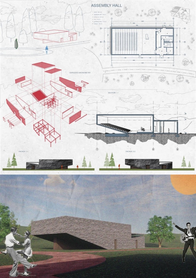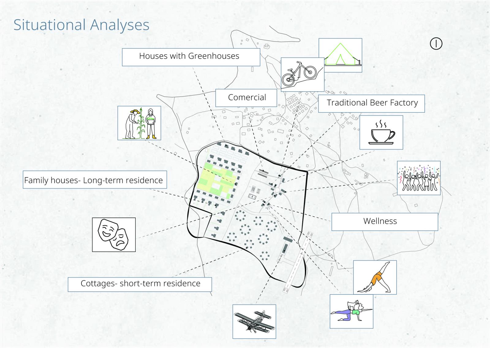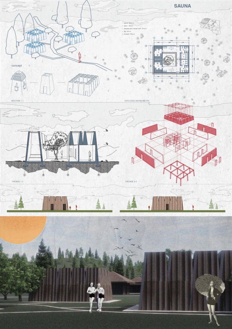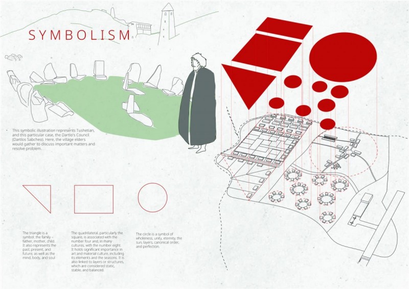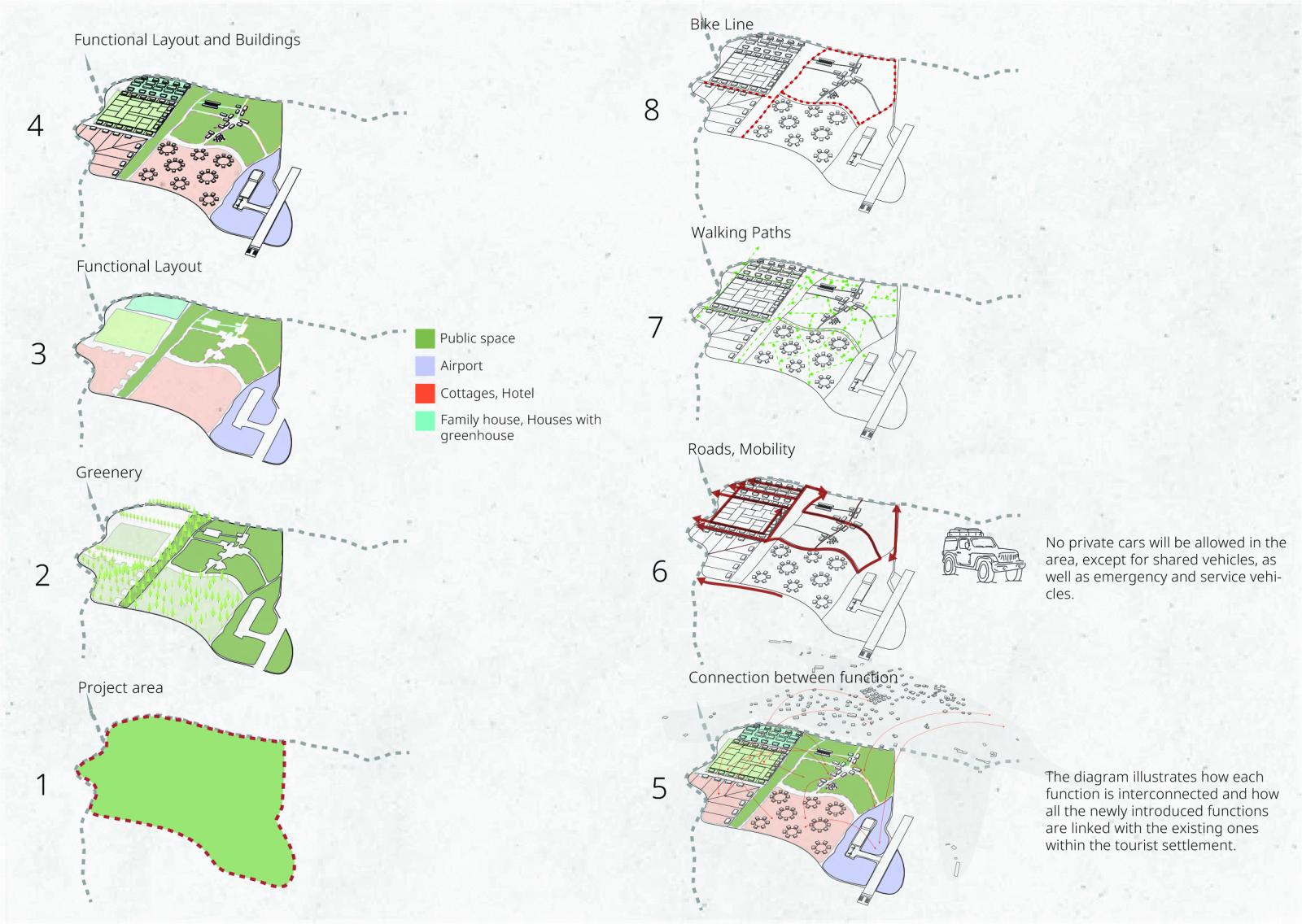 Tusheti Seasonal Settlement (Ethno Psycho-Physiological Tourism) This is a bachelor’s project, the idea of which initially arose from observing the challenges currently facing the mountains and the depopulation of mountainous regions. Tusheti, one of Georgia’s most beautiful and remote regions, where permanent residents are now nearly gone due to harsh climatic and other environmental factors, provided an excellent foundation for an interesting project. At the beginning of the research, the village of Omalo was chosen, as it is the center of Tusheti and was originally intended to host an airport whose construction had started but was never completed. This unfinished airport subsequently became the cornerstone of our bachelor’s project, around which the settlement was developed with various new functions. The seasonal settlement offers not only tourists a unique opportunity to experience the local culture and way of life but also benefits the local Tusheti population. Residents will be able to return to their land without fear of complete isolation during the winter. The project aims to complete the unfinished airport in Omalo and establish cultural and educational facilities, such as an assembly hall, an art and exhibition space, wellness centers including saunas, Pilates and yoga studios, and organized cycling tours (off-ride). Residential areas include: Cottages for short-term visitors; Family houses with greenhouses, allowing winter stays and crop cultivation; Long-term family homes, which include private plots for gardening, giving tourists or Georgian citizens a chance to escape urban chaos and reconnect with nature temporarily.