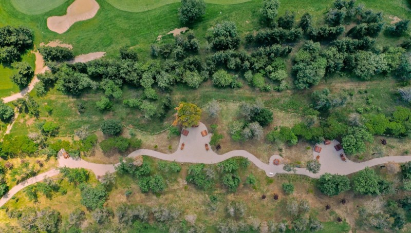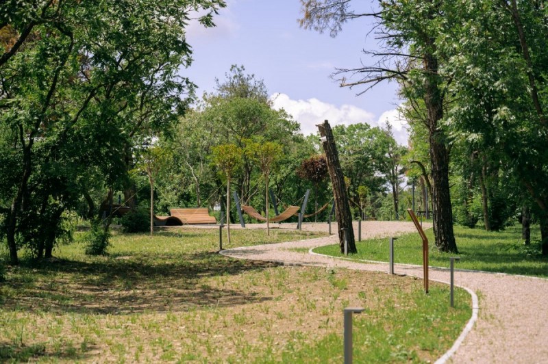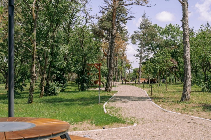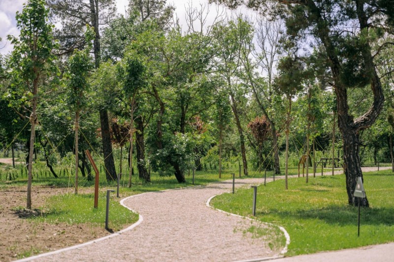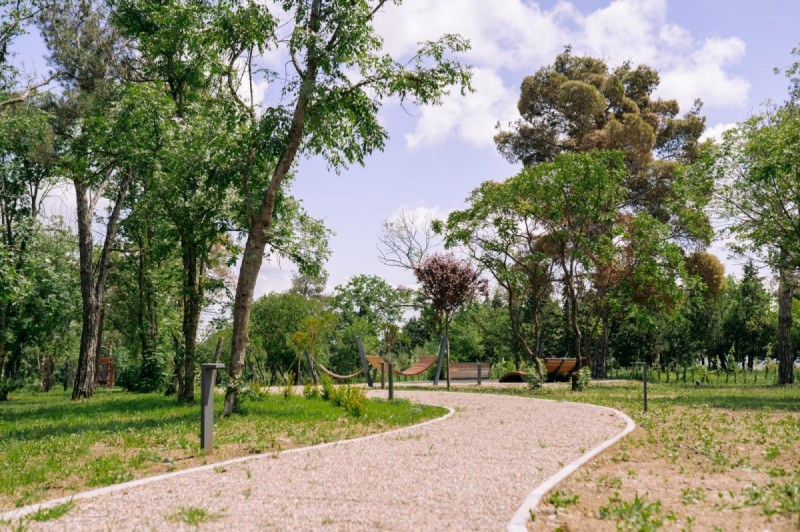 Tbilisi Hills Woods Park is a carefully planned natural enclave within the Tbilisi Hills development, designed to maintain the original terrain and vegetation while subtly enhancing biodiversity through the careful addition of native plant species. Emphasizing minimal intervention, the park serves as a tranquil habitat for birds and small animals, offering residents and visitors a serene escape that blends urban living with ecological harmony. Its design complements surrounding wild, untouched landcape, while it's character reflects a commitment to sustainability and landscape integrity, making it a unique green space in the context of contemporary urban planning.