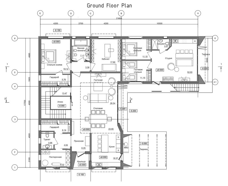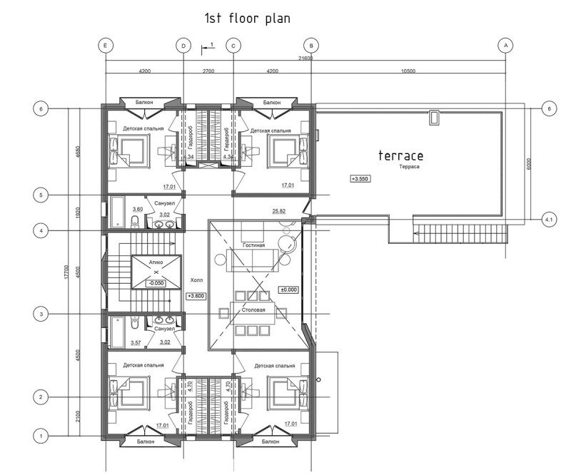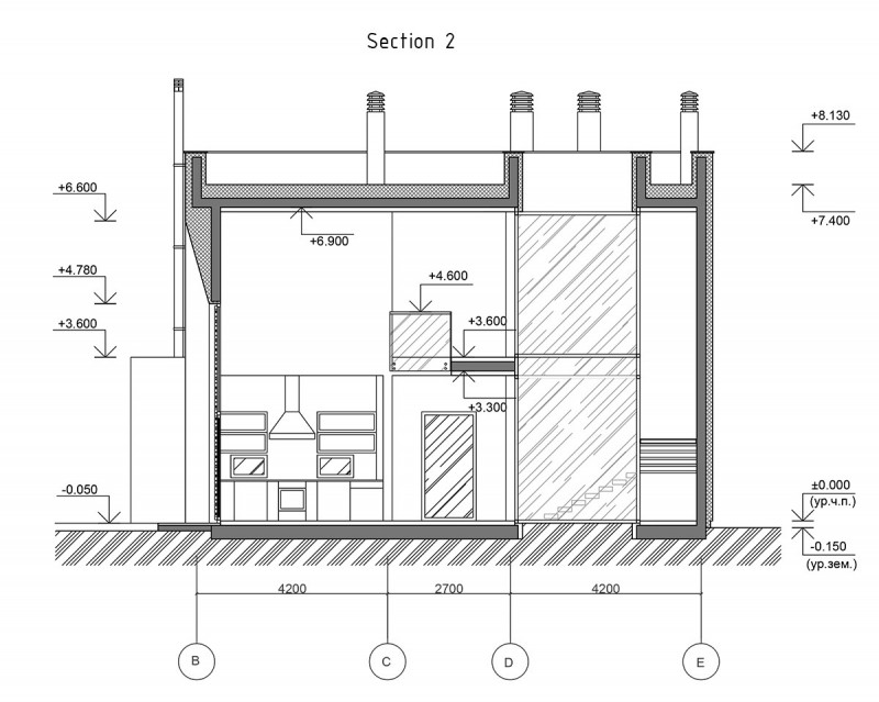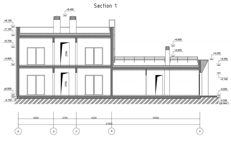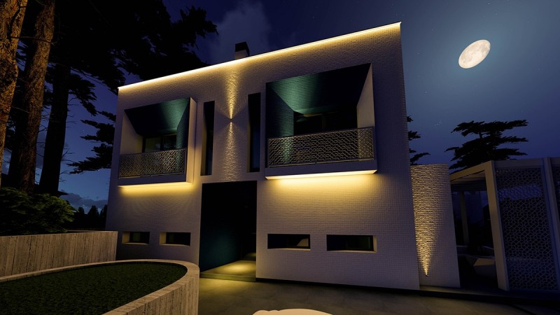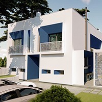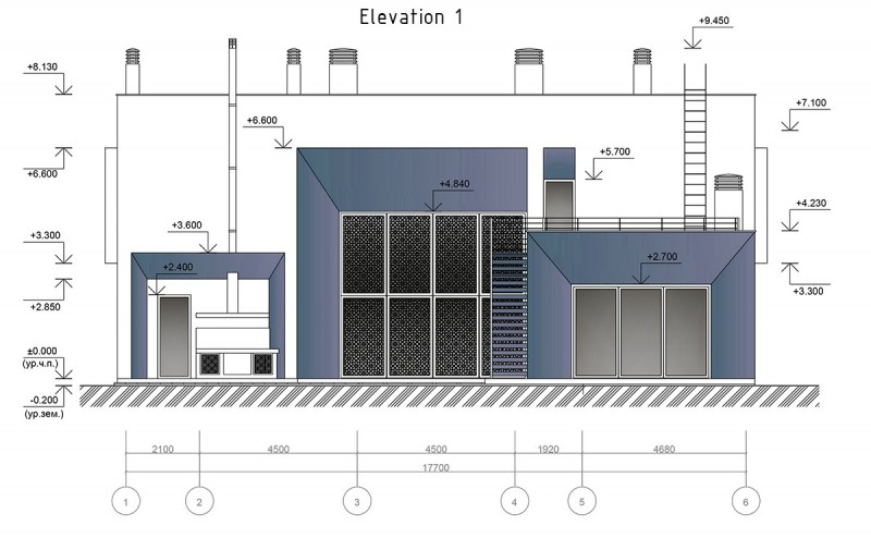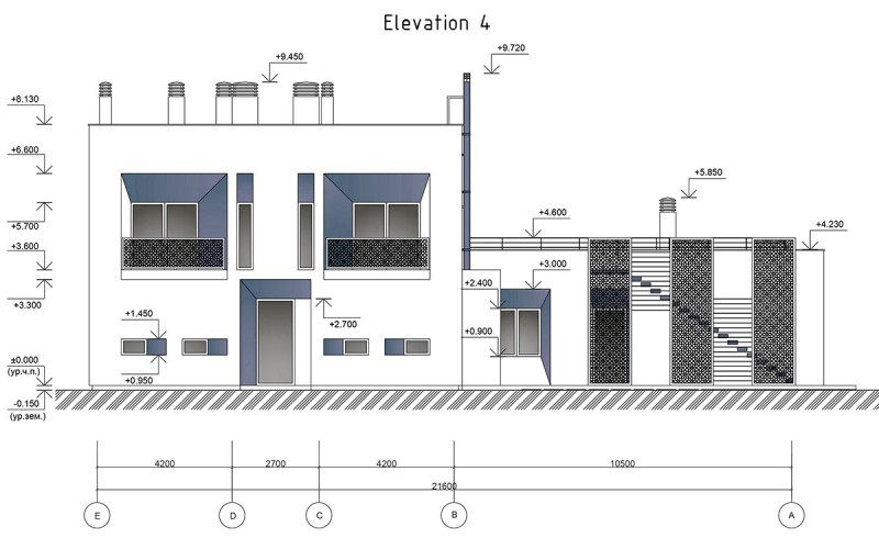 The residential house was designed for a family of six people is designed in a modern style and is a 2-storey main building without a basement and without an attic with a flat roof, which is not exploited, on which the installation of solar collectors for water heating is provided. The building is rectangular in plan. Attached to it is a one-story guest block with an exploited roof terrace with access from the second floor hall of the main part of the building, as well as from the site. Simple but elegant forms of construction provide cost-effectiveness of construction and good thermal characteristics. \\r\\nOn the plot in addition to the house provides a swimming pool and Parking space for 2 cars.\\r\\nIn the exterior decoration is used glass mosaic white and blue (also considered the option of finishing Krion or ceramic granite large format), decorative folding sunscreens.\\r\\nOn the construction site during the design of the maximum preserved existing trees-pines.\\r\\n