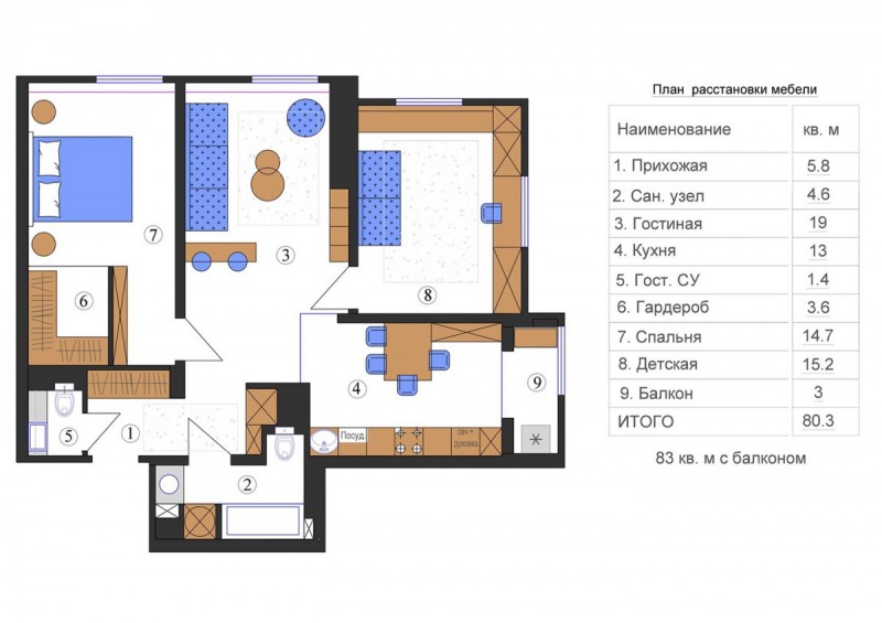 Small three-room apartment